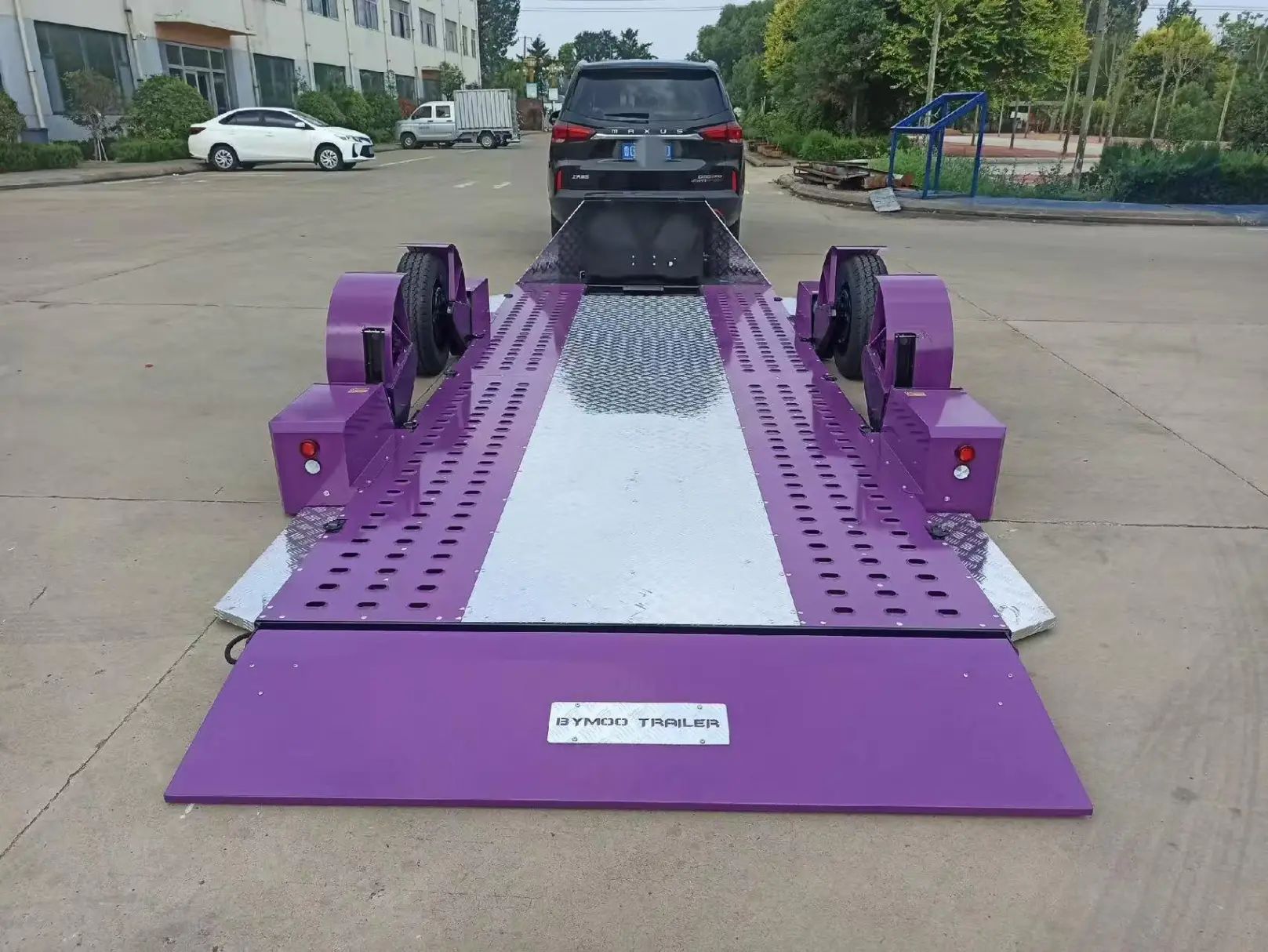 Nilagyan ng electric hydraulic lifting system at wireless remote control na operasyon, binibigyang-daan nito ang one-key control ng platform lifting at tail panel unfolding. Maaaring direktang magmaneho ang mga sasakyan papunta sa trailer nang walang karagdagang mga rampa o forklift. Ang isang solong tao ay maaaring kumpletuhin ang paglo-load at pagbabawas, lubos na pagpapabuti ng kahusayan sa pagtatrabaho, na ginagawa itong perpekto para sa madalas na mga sitwasyon sa transportasyon.